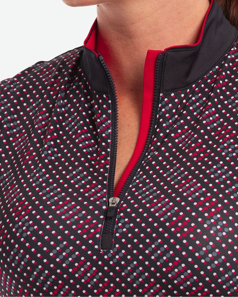 S/L BIAS GEO DOT PRINT BLOCKED ZIP MOCK POLO W/ STRIPE PIPING TRIM